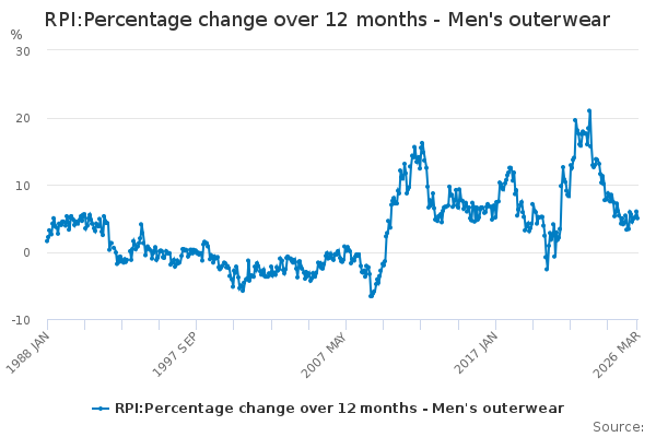 Download this time seriesRPI:Percentage change over 12 months - Men's outerwear