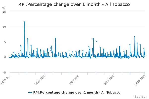 Download this time seriesRPI:Percentage change over 1 month - All Tobacco