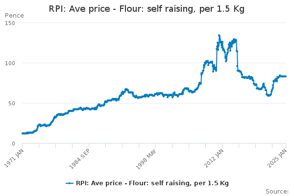 Download this time seriesRPI: Ave price - Flour: self raising, per 1.5 Kg