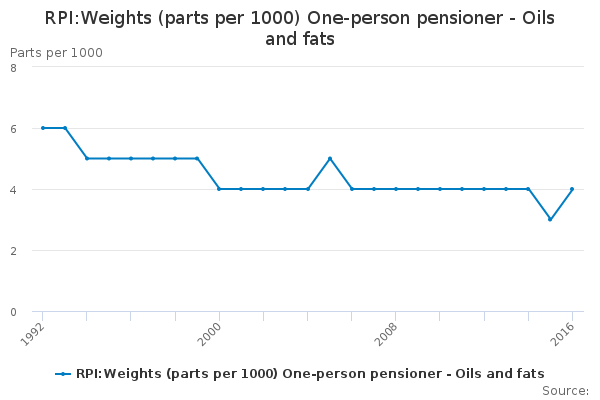 Download this time seriesRPI:Weights (parts per 1000) One-person pensioner - Oils and fats