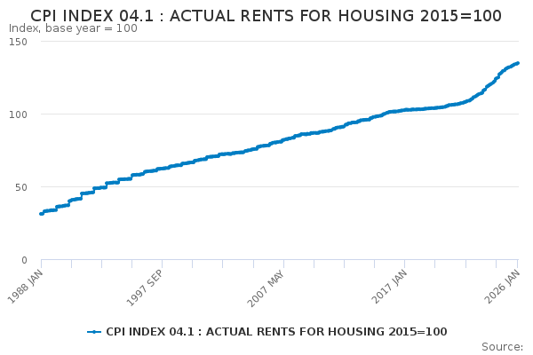 Download this time seriesCPI INDEX 04.1 : ACTUAL RENTS FOR HOUSING 2015=100