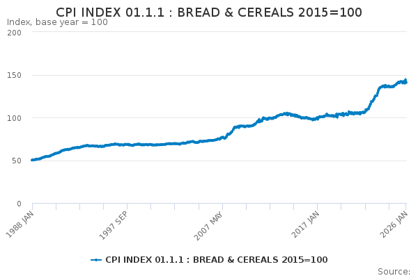 Download this time seriesCPI INDEX 01.1.1 : BREAD & CEREALS 2015=100