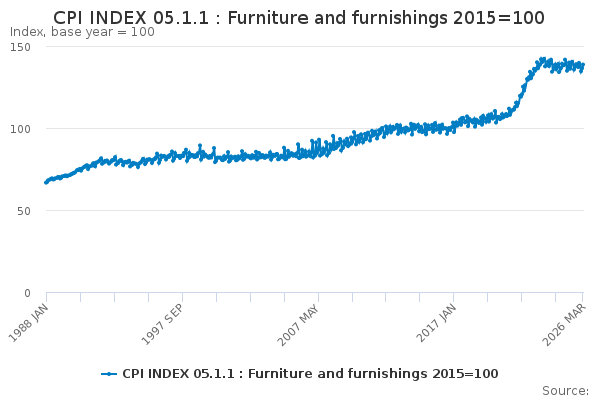 Download this time seriesCPI INDEX 05.1.1 : Furniture and furnishings 2015=100