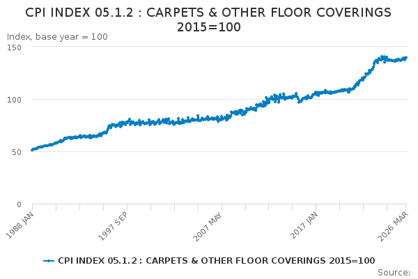 Download this time seriesCPI INDEX 05.1.2 : CARPETS & OTHER FLOOR COVERINGS 2015=100