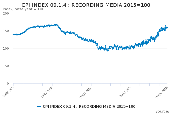Download this time seriesCPI INDEX 09.1.4 : RECORDING MEDIA 2015=100