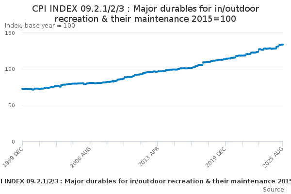 Download this time seriesCPI INDEX 09.2.1/2/3 : Major durables for in/outdoor recreation & their maintenance 2015=100