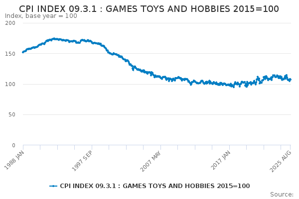 Download this time seriesCPI INDEX 09.3.1 : GAMES TOYS AND HOBBIES 2015=100