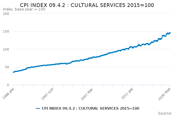 Download this time seriesCPI INDEX 09.4.2 : CULTURAL SERVICES 2015=100