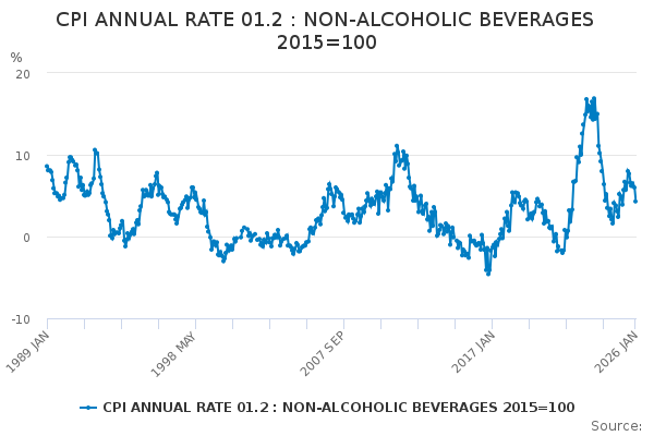 Download this time seriesCPI ANNUAL RATE 01.2 : NON-ALCOHOLIC BEVERAGES 2015=100