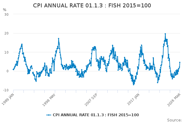 Download this time seriesCPI ANNUAL RATE 01.1.3 : FISH 2015=100