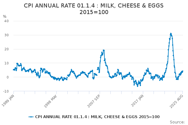 Download this time seriesCPI ANNUAL RATE 01.1.4 : MILK, CHEESE & EGGS 2015=100