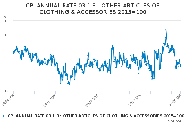 Download this time seriesCPI ANNUAL RATE 03.1.3 : OTHER ARTICLES OF CLOTHING & ACCESSORIES 2015=100