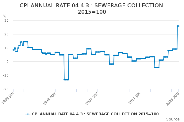 Download this time seriesCPI ANNUAL RATE 04.4.3 : SEWERAGE COLLECTION 2015=100