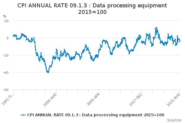 Download this time seriesCPI ANNUAL RATE 09.1.3 : Data processing equipment 2015=100