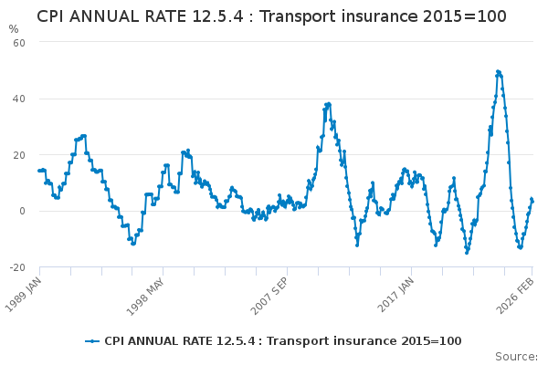 Download this time seriesCPI ANNUAL RATE 12.5.4 : Transport insurance 2015=100