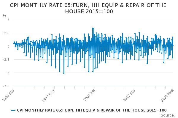 Download this time seriesCPI MONTHLY RATE 05:FURN, HH EQUIP & REPAIR OF THE HOUSE 2015=100