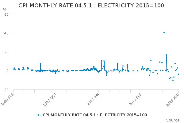Download this time seriesCPI MONTHLY RATE 04.5.1 : ELECTRICITY 2015=100