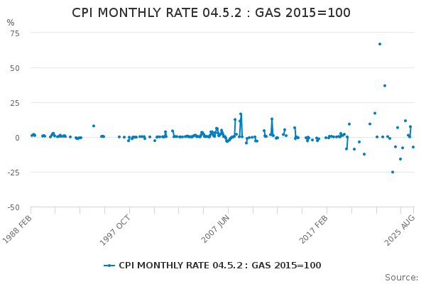 Download this time seriesCPI MONTHLY RATE 04.5.2 : GAS 2015=100