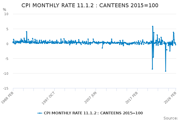 Download this time seriesCPI MONTHLY RATE 11.1.2 : CANTEENS 2015=100
