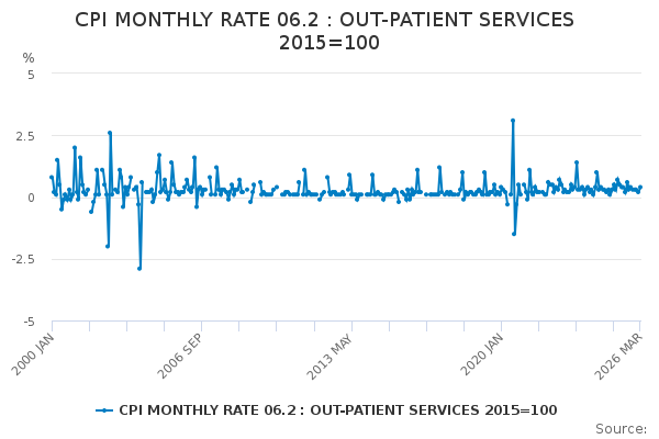 Download this time seriesCPI MONTHLY RATE 06.2 : OUT-PATIENT SERVICES 2015=100