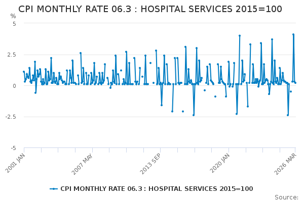 Download this time seriesCPI MONTHLY RATE 06.3 : HOSPITAL SERVICES 2015=100