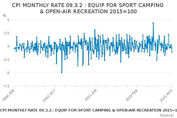 Download this time seriesCPI MONTHLY RATE 09.3.2 : EQUIP FOR SPORT CAMPING & OPEN-AIR RECREATION 2015=100