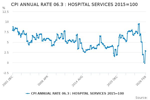 Download this time seriesCPI ANNUAL RATE 06.3 : HOSPITAL SERVICES 2015=100