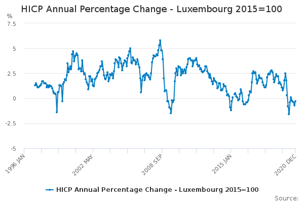 Download this time seriesHICP Annual Percentage Change - Luxembourg 2015=100