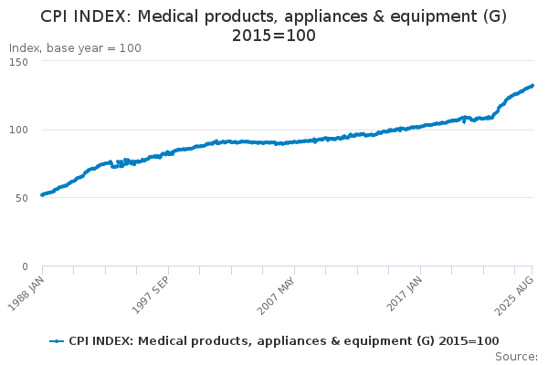 Download this time seriesCPI INDEX: Medical products, appliances & equipment (G) 2015=100