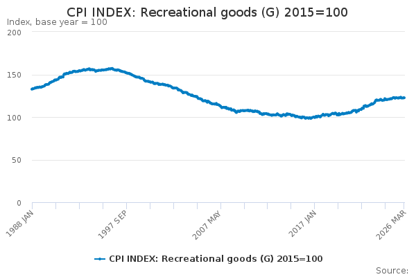 Download this time seriesCPI INDEX: Recreational goods (G) 2015=100