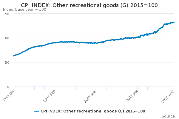 Download this time seriesCPI INDEX: Other recreational goods (G) 2015=100