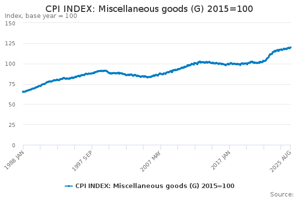 Download this time seriesCPI INDEX: Miscellaneous goods (G) 2015=100
