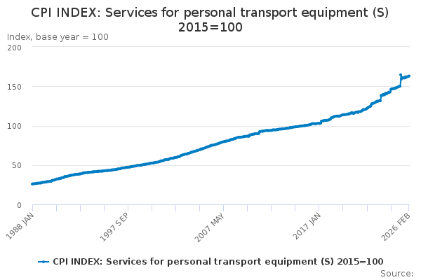 Download this time seriesCPI INDEX: Services for personal transport equipment (S) 2015=100
