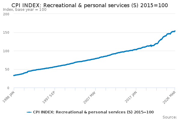 Download this time seriesCPI INDEX: Recreational & personal services (S) 2015=100