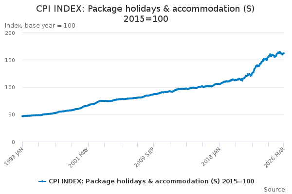 Download this time seriesCPI INDEX: Package holidays & accommodation (S) 2015=100