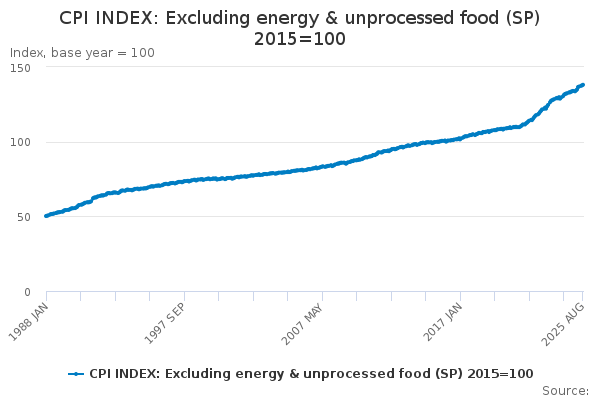 Download this time seriesCPI INDEX: Excluding energy & unprocessed food (SP) 2015=100