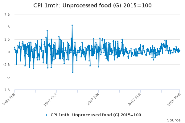 Download this time seriesCPI 1mth: Unprocessed food (G) 2015=100