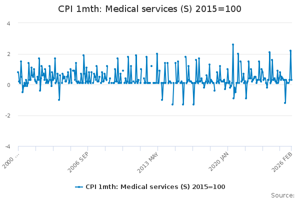 Download this time seriesCPI 1mth: Medical services (S) 2015=100