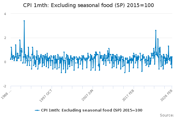 Download this time seriesCPI 1mth: Excluding seasonal food (SP) 2015=100