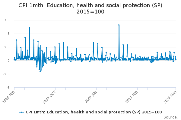 Download this time seriesCPI 1mth: Education, health and social protection (SP) 2015=100