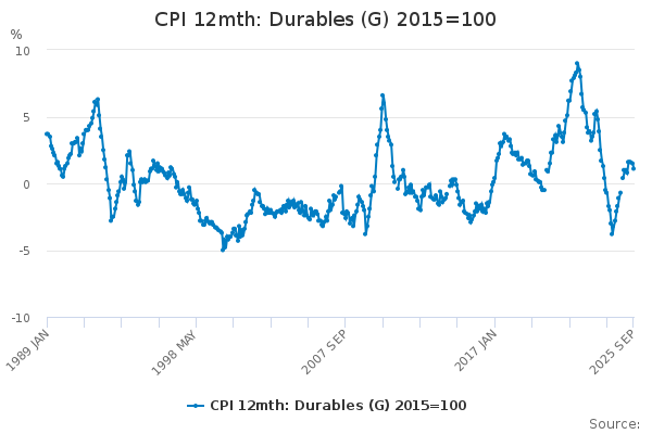 Download this time seriesCPI 12mth: Durables (G) 2015=100