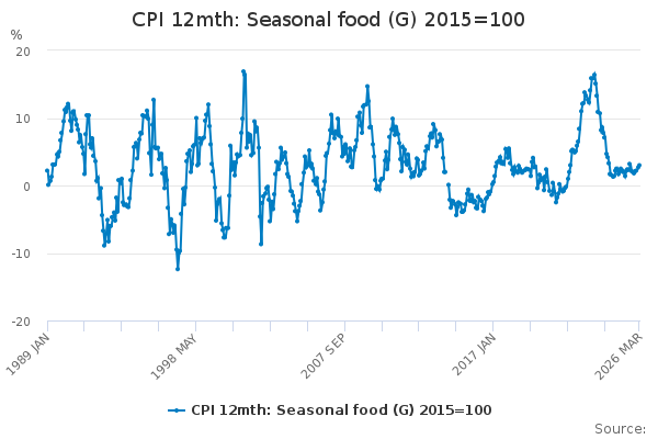 Download this time seriesCPI 12mth: Seasonal food (G) 2015=100