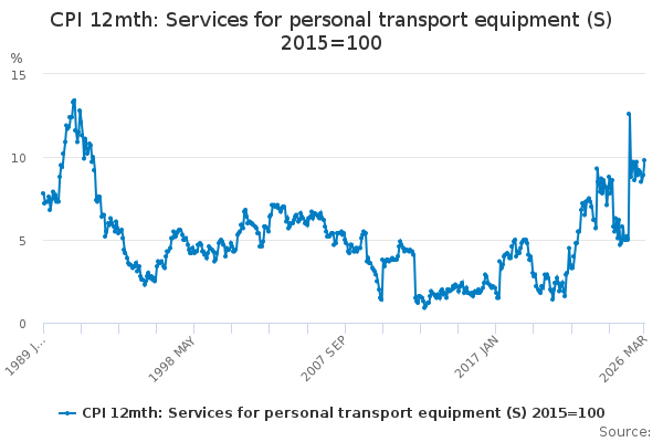 Download this time seriesCPI 12mth: Services for personal transport equipment (S) 2015=100