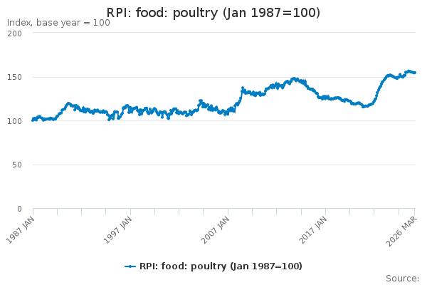 Download this time seriesRPI: food: poultry (Jan 1987=100)