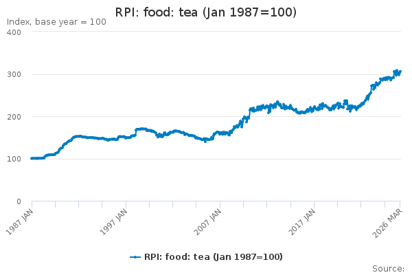 Download this time seriesRPI: food: tea (Jan 1987=100)