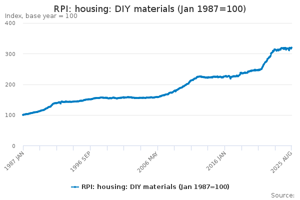 Download this time seriesRPI: housing: DIY materials (Jan 1987=100)