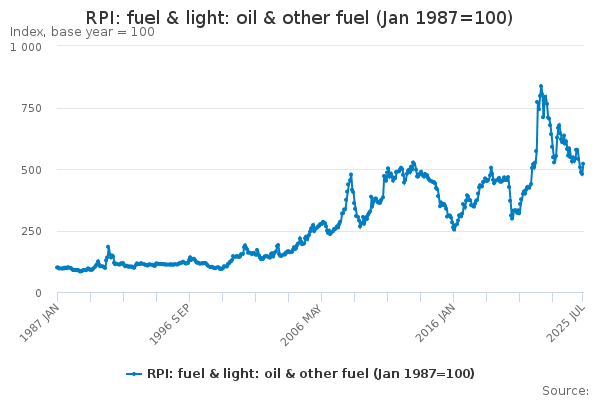 Download this time seriesRPI: fuel & light: oil & other fuel (Jan 1987=100)