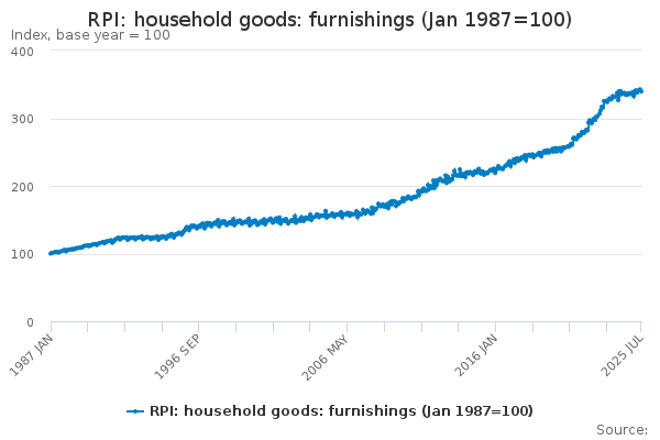Download this time seriesRPI: household goods: furnishings (Jan 1987=100)