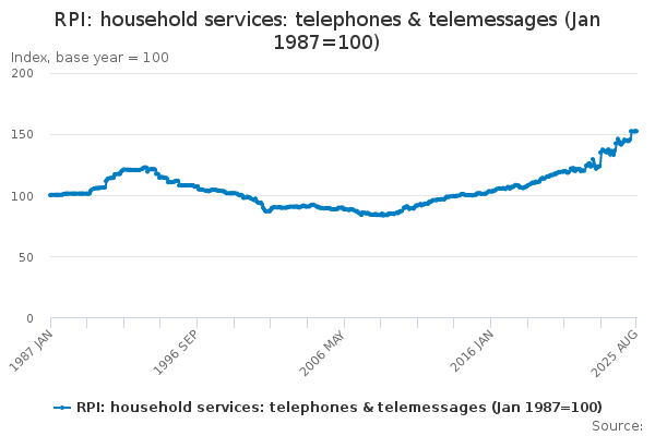 Download this time seriesRPI: household services: telephones & telemessages (Jan 1987=100)