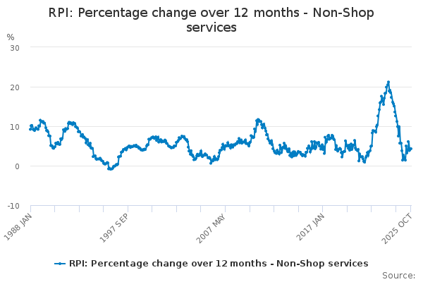 Download this time seriesRPI: Percentage change over 12 months - Non-Shop services